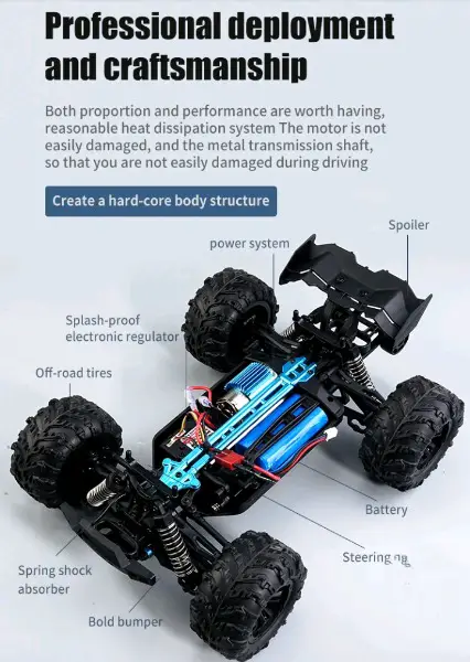 Modellauto. Ausgestattet mit einem leistungsstarken, bürstenlosen Motor und einem Allradantriebssystem, das auf Geschwindigkeiten von bis zu 50 km/h ausgelegt ist, bietet dieses Fahrzeug eine unübertroffene Leistung. Die robuste Bauweise garantiert Langlebigkeit und Widerstandsfähigkeit gegen die härtesten Bedingungen, während das geringe Gewicht eine beeindruckende Beschleunigung und Agilität ermöglicht. Perfekt für den ambitionierten RC-Rennfahrer, der keine Kompromisse bei Qualität und Geschwindigkeit eingeht.