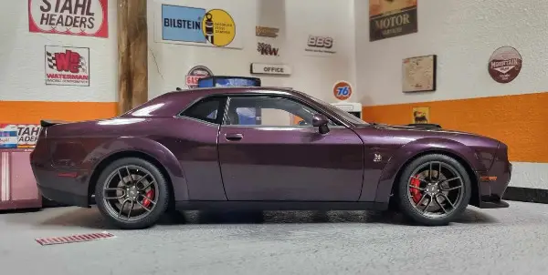 1/18 Dodge Challenger R/T Scat Pack Shaker Widebody 2022 lila von AUTOart mit OVP.
