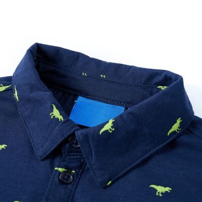 Dieses Kinderhemd hat lange Ärmel, einen spitzen Kragen und wird mit einer Knopfreihe geschlossen. Das Hemd ist mit Dinosauriern bedruckt. Zu 100% aus Baumwolle gefertigt, ist das Kinderhemd komfortabel und atmungsaktiv.