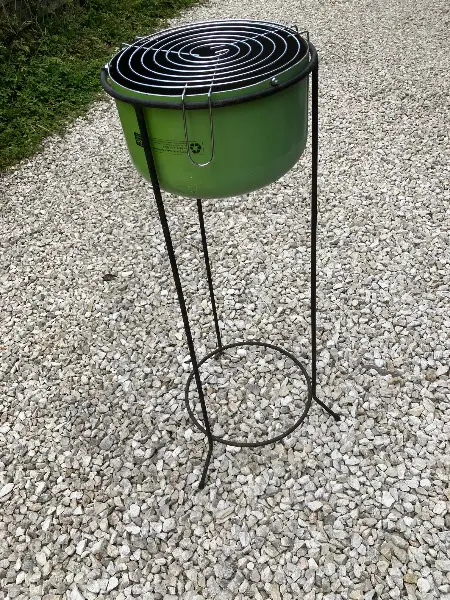A) Grill, Föierdopf, Ø 19 cm, H= 45 - 50 cm. Messingstangenfüsse. Auch einer H=80 cm. (Foto2+3) Alle Luftloch unten, werden metallen- dunkelgrau, + inseitiger Ascherost, + oben Chromstahlgrillgitter. B) Ø 25, ca. 55 cm hoch. C) Ø25 cm H=ca. 45 cm. Wegen vorig. Wegen Nichtgebrauchs. Abholen auch in Liestal. Versand Fr. 12.00 (zerlegt und gegen Vorauszahlung) . Bei Interesse bitte um Ihre Tel Nattell-Mopille-Num., dangge!