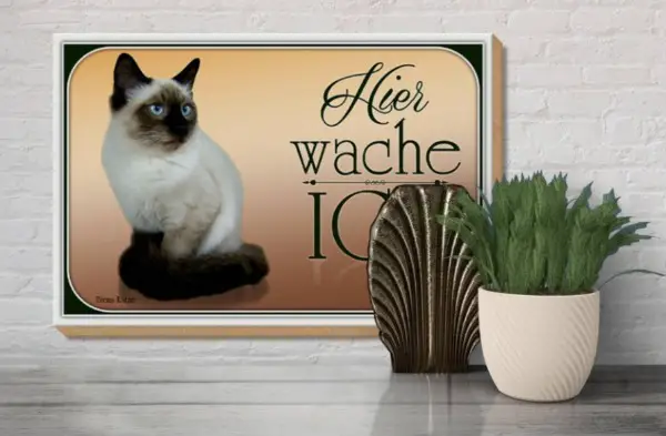 Katzen-Holzschild hat eine Stärke von 10mm und ist zum Aufstellen oder Hängen. Mit beiliegenden Holzdübeln zum schrägen Aufstellen geliefert. Vorbeigehen ohne zu Lächeln ist unmöglich. Masse: 20x30cm, Gewicht: 500gr., Dicke: 1cm. Made in Germany.
