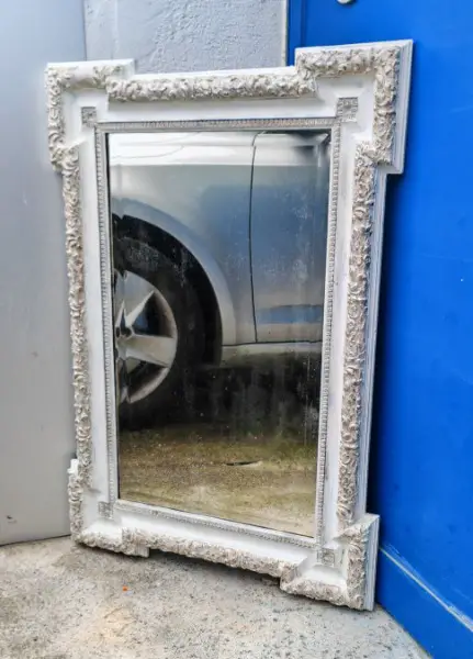 Der Spiegel ist alt, daher kann er einige Beschädigungen, Nachdunkelungen und Patina aufweisen, was jedoch nicht den Blick in den Spiegel nicht erschwert