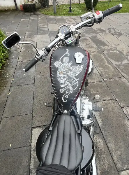 Ammortizzatori posteriori molto ribassati, sella monoposto, manubrio dritto e basso e altri particolari ne fanno un modello unico.