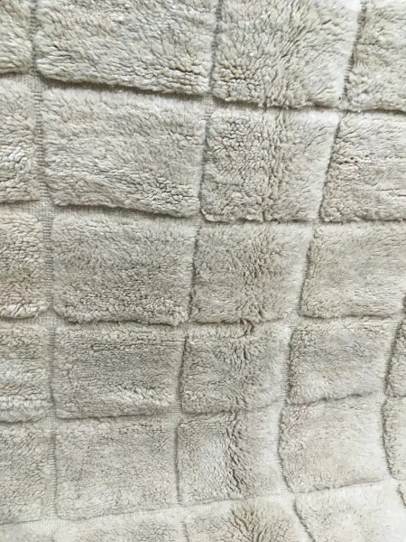 mouton exceptionnelle, le tissage est particulièrement serré, ce qui donne un tapis plus dense. De ce fait, une quantité plus importante de laine est nécessaire pour tisser un tapis. Les tapis M’Rirt sont également lavés et frottés une fois tissés ce qui leur confère un toucher ultra- moelleux et une douceur incomparable.