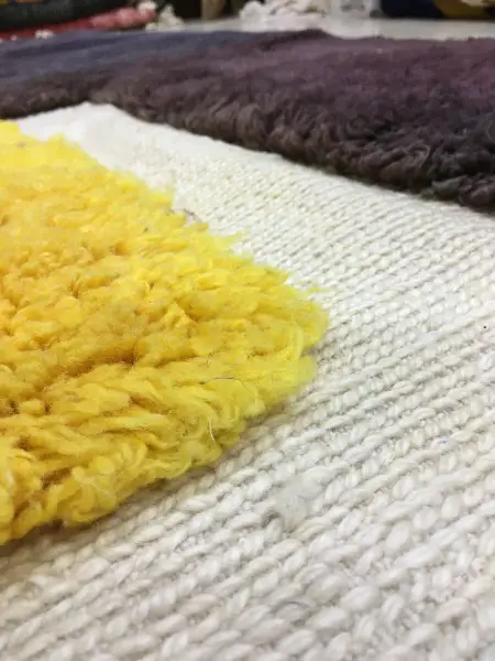 Tissés avec une qualité de laine de mouton exceptionnelle, le tissage est particulièrement serré, ce qui donne un tapis plus dense. De ce fait, une quantité plus importante de laine est nécessaire pour tisser un tapis. Les tapis M’Rirt sont également lavés et frottés une fois tissés ce qui leur confère un toucher ultra- moelleux et une douceur incomparable.