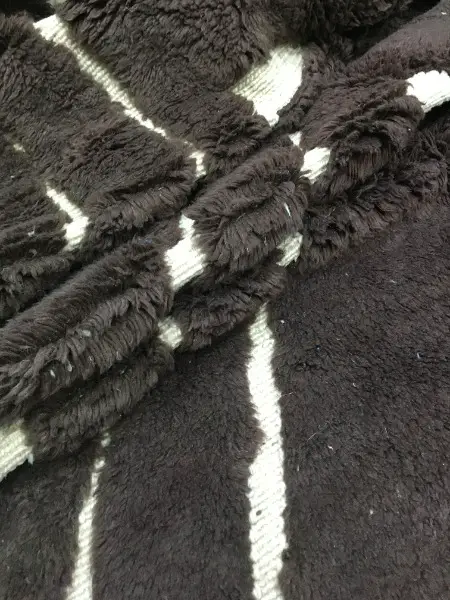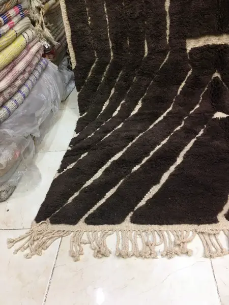 mouton exceptionnelle, le tissage est particulièrement serré, ce qui donne un tapis plus dense. De ce fait, une quantité plus importante de laine est nécessaire pour tisser un tapis. Les tapis M’Rirt sont également lavés et frottés une fois tissés ce qui leur confère un toucher ultra- moelleux et une douceur incomparable.
