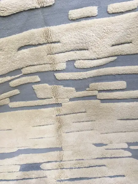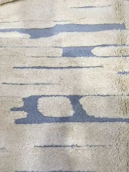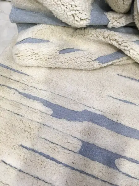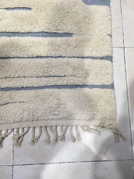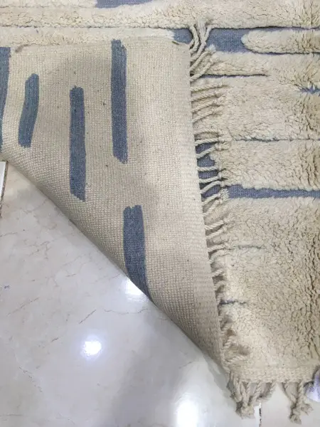 mouton exceptionnelle, le tissage est particulièrement serré, ce qui donne un tapis plus dense. De ce fait, une quantité plus importante de laine est nécessaire pour tisser un tapis. Les tapis M’Rirt sont également lavés et frottés une fois tissés ce qui leur confère un toucher ultra- moelleux et une douceur incomparable.