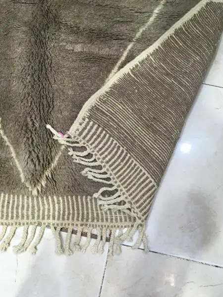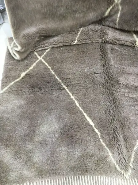 Tissés avec une qualité de laine de mouton exceptionnelle, le tissage est particulièrement serré, ce qui donne un tapis plus dense. De ce fait, une quantité plus importante de laine est nécessaire pour tisser un tapis. Les tapis M'Rirt sont également lavés et frottés une fois tissés ce qui leur confère un toucher ultra- moelleux et une douceur incomparable.