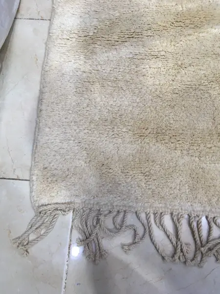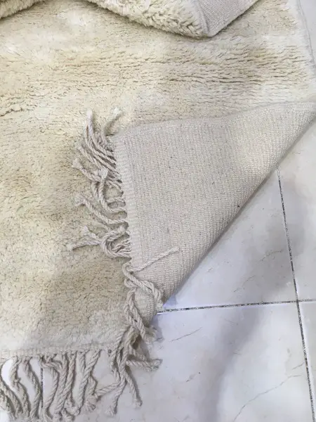 Tissés avec une qualité de laine de mouton exceptionnelle, le tissage est particulièrement serré, ce qui donne un tapis plus dense. De ce fait, une quantité plus importante de laine est nécessaire pour tisser un tapis. Les tapis M'Rirt sont également lavés et frottés une fois tissés ce qui leur confère un toucher ultra- moelleux et une douceur incomparable.