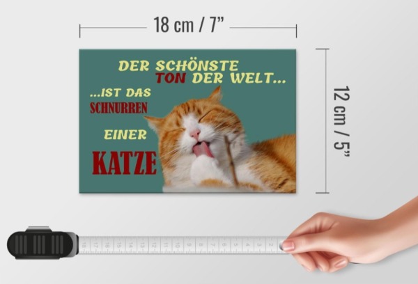Katzen-Blechschild hat in den Ecken 4 kleine vorgebohrte Löcher zum Befestigen an einer