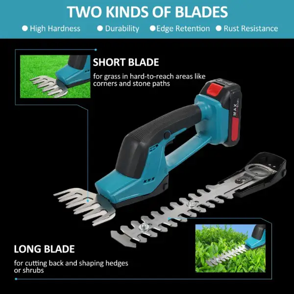NEUE WARE (Mit Originalverpackung) -Lithium-Akku-Heckenschere, Hand-Doppelzweck-Heckenschere, 21-V-Akku, Buschschneider, Rasentrimmer für Strauchzweige und Rasen