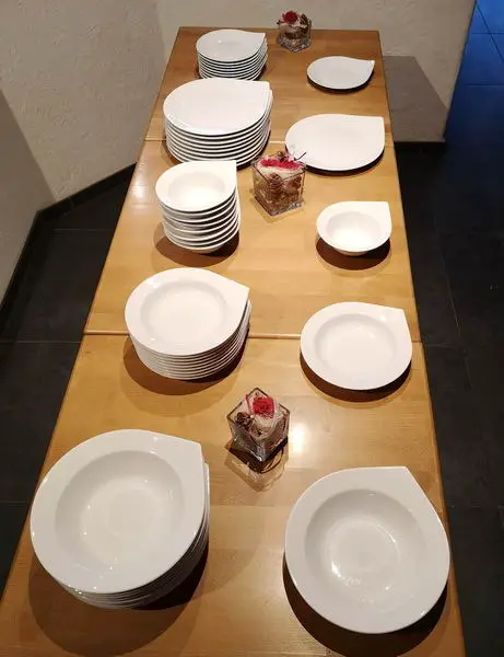 Es handelt sich um bestes Gastro- Porzellan Teller mit klarem Design, ohne irgendwelche Beschädigungen! Formschön und Servicefreundliche, Spühlmaschinenfest und wichtig: Dieses Geschirr solte nach wie vor erhältlich und kann Ergänzt und auch erweitert werden. Preis versteht sich für den gesammten Posten!
