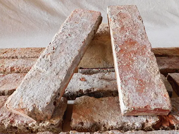 original historische Backsteine zu Antikriemchen geschnitten.