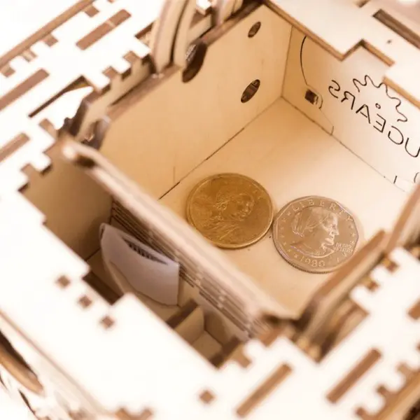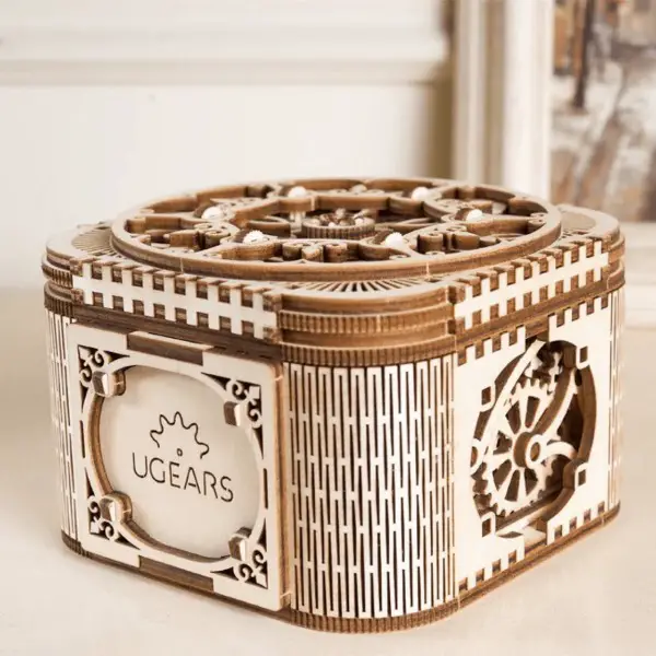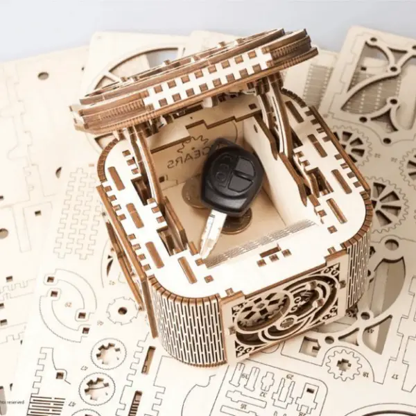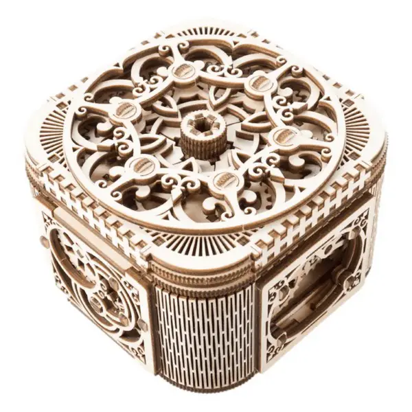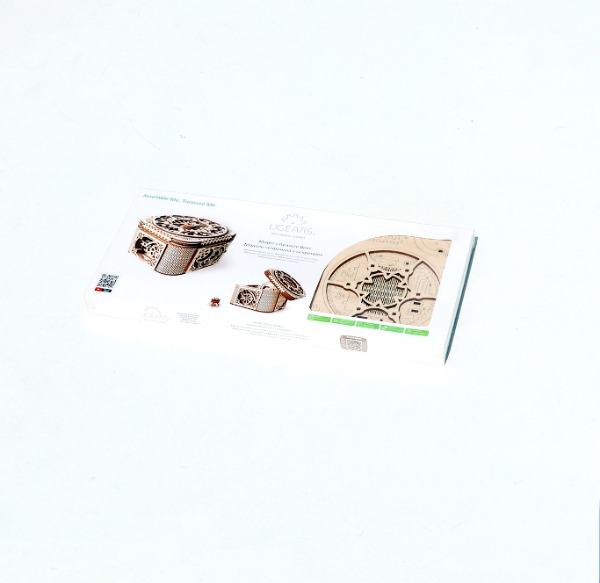 Wie eine echte Schatztruhe birgt auch diese Miniaturversion ein Geheimnis in ihrem Inneren, das es zu lösen gilt. Um die Truhe zu öffnen, ist innerhalb des dekorativ verzierten Deückels ein kleiner Schlüssel integriert, der sich durch eine leichte Drehung im Uhrzeigersinn herausnehmen lässt.
