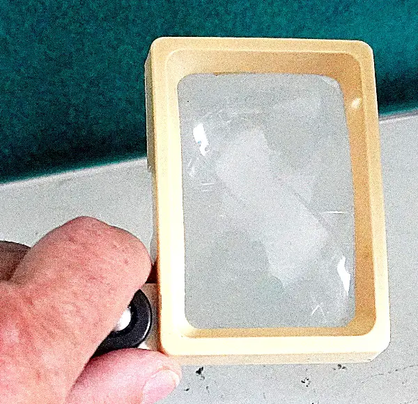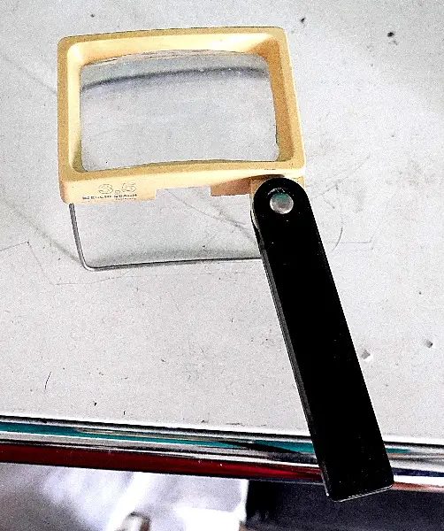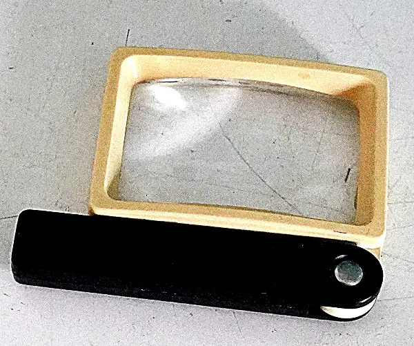 Es ist ein neuwertiges Vergrösserungsglas für alle Zwecke. Vergrösserung ist 3.5X. Masse der Scheibe: 8x5cm.