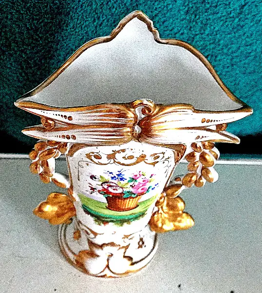 Es ist eine schöne Prunkvase Vintage aus Portugal der 50er Jahre. Masse: H 23cm, B 16cm, T 8cm. Bitte bachten Sie, dass die Vase einen guten Stand hat. Für ihr Alter sieht sie wirklich wie neu aus, siehe Bilder!