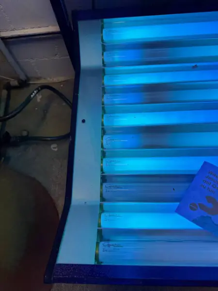 . Es funktioniert, jedoch sind 3 UV-Röhren defekt und die Gasdruckdämpfer des Deckels müsste man auswechseln. Kann besichtigt werden. Ab Platz keine Garantie.