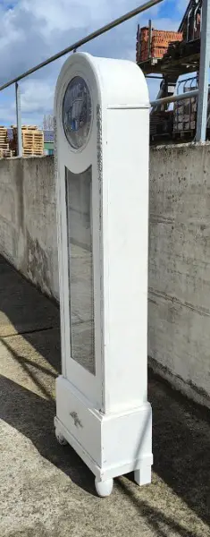 Diese antike Standuhr, mit ihrer wunderschön rund geschwungenen Form, stammt aus einer Hausräumung. Ein elegantes, edles Stück, das die Blicke auf sich zieht! Die Uhr kann gerne vor Ort (8280 Kreuzlingen) besichtigt werden. Die Uhr funktioniert und hat einen schönen halb- und stündlichen Glockenschlag.