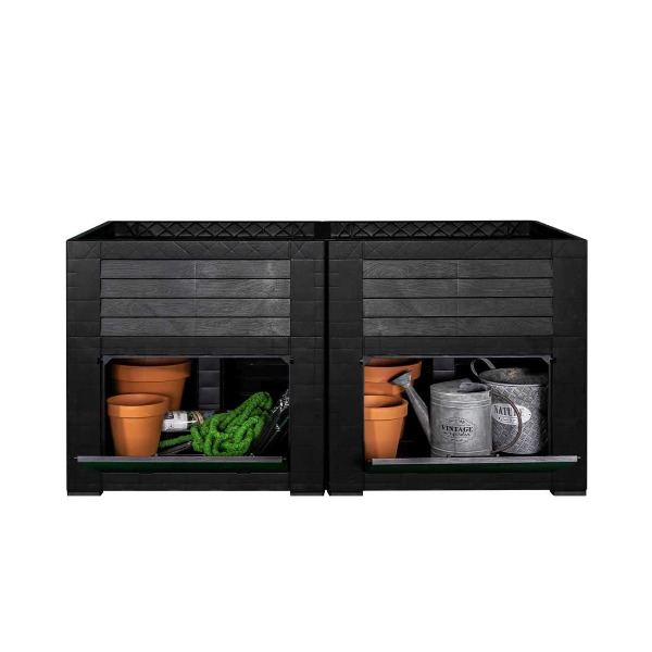Ce large lit surélevé de Weber Garden est extrêmement pratique et dépasse toutes attentes. Il est extrêmement facile et rapide à assembler et s'emboîte facilement. Le plastique est ennobli d'une optique à lamelles de bois et s'intègre visuellement à merveille dans chaque jardin. De plus, le potager surélevé dispose d'un système d'évacuation ingénieux des eaux tout en offrant un espace de rangement pour divers ustensiles de jardin.