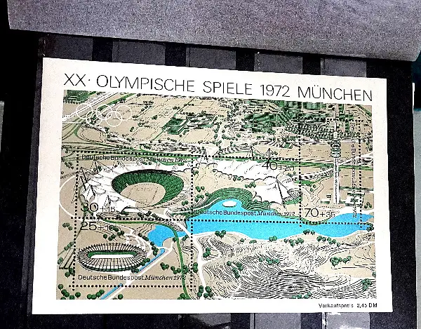 Es ist eine Briefmarken Sammlung die an die denkwürdigen Olypischen Spiele von 1972 in München errinnern. Sie erhalten alle Briefmarken die Sie sehen.