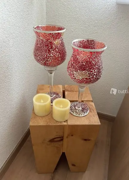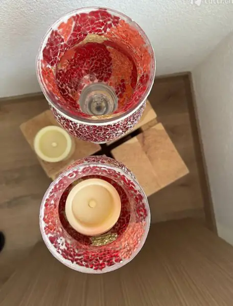 Mosaik Glas Kerzenständer mit batteriebetriebenen Wachskerzen.