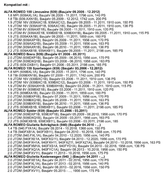 Alfa Romeo Giulietta/ 159 / Brera / Spider