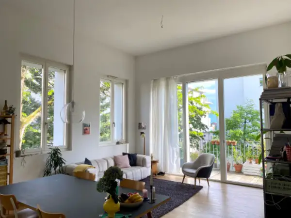 Reprise de bail à partir du 1 juillet 2024 pour un appartement 3.5 pièces (108m2) avec une grande terrasse et deux salles de bain.