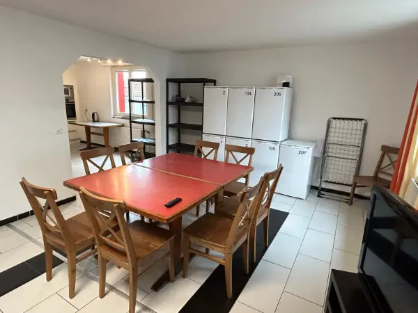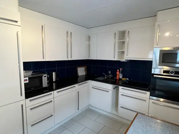 Die Gemeinschaftsküche ist voll bestückt mit Keramikherd, Heissluftbackofen, 2 Mikrowellen, Geschirrspüler, Töpfen, Pfannen, Geschirr, Besteck uvm.