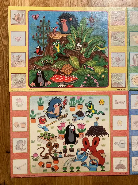 Hier gibt es viel zu entdecken! Der Maulwurf beim Spielen auf der Wiese und im Wasser, der Maulwurf beim Picknick und bei der Gartenarbeit. Aber nur wer sich die Bilder ganz genau anschaut, findet die richtigen Kärtchen zu den Legetafeln.
