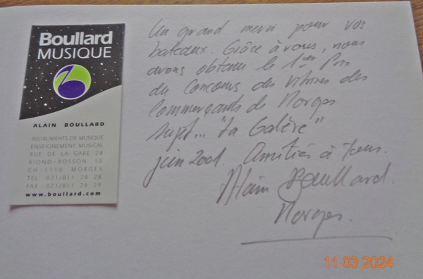 C’est un voyage à travers le temps et l'histoire, menant le lecteur des mers antiques aux rives du Léman contemporain. Ce livre, dédicacé par Alain Boullar (Boullard Musique Morges) , est une œuvre unique qui mêle passion, histoire et technique navale. Ce livre est une invitation à plonger dans l'univers fascinant des galères, ces bateaux emblématiques qui ont marqué l'histoire de la navigation.