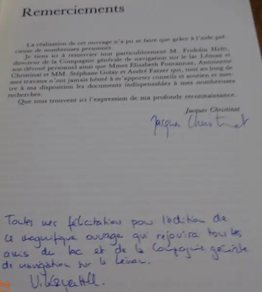 Avec une version originale en parfait état, ce livre est une joyeuse surprise pour les amateurs de patrimoine industriel et maritime, ainsi que pour tous ceux qui ont une affection particulière pour le Léman et son histoire. Les multiples dédicaces ajoutent une touche personnelle et unique à cette édition, rendant chaque exemplaire un objet de collection précieux.
