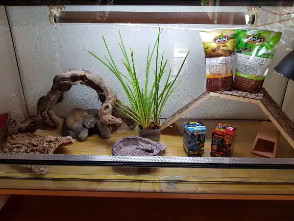 Terrarium mit sämtlicher Einrichtung.