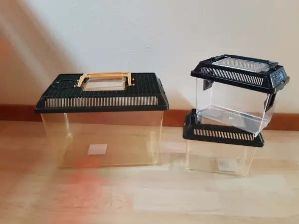 Reptilien und 2 Insektenboxen.