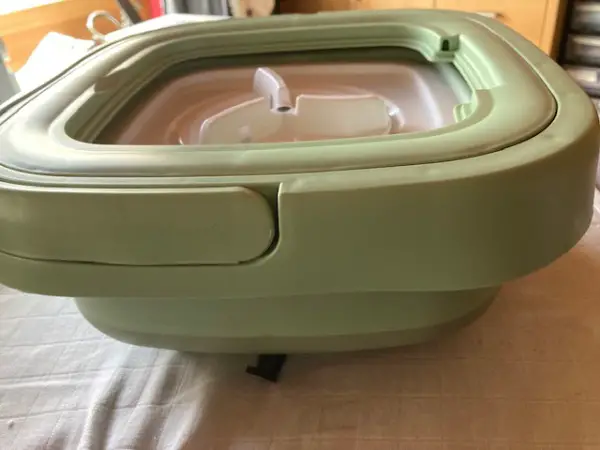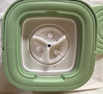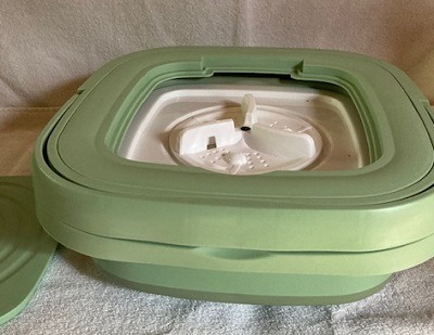 Waschmaschine ist zusammenlegbar und hat an einem kleinen Ort Platz.