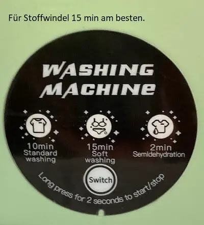 Waschmaschine ist geeignet z.B. für Stoffwindel, Unterwsche, Socken, Babykleidung.