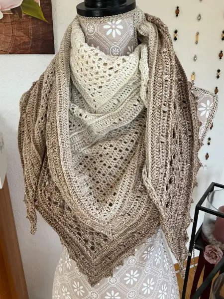 Neues von Hand gehäkeltes Dreieckstuch aus einem wunderschönen Farbverlaufs Bobbel
