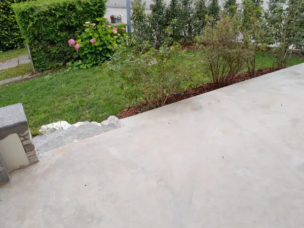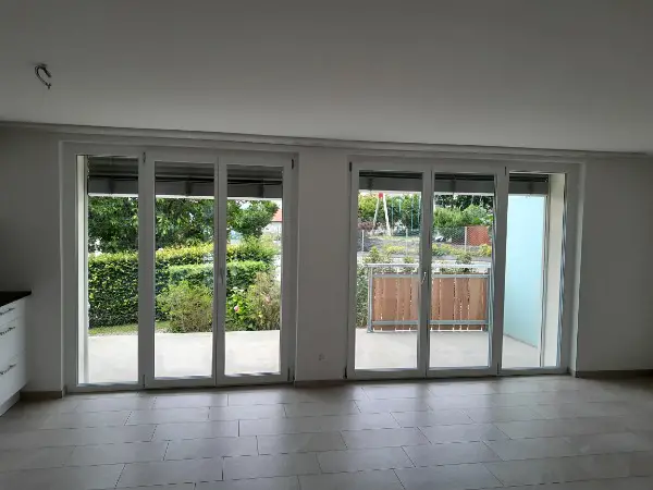 Die Wohnung verfügt über eine grosszügige Terrasse. Garten mit Blick auf die Berge.