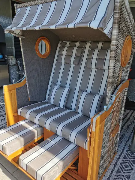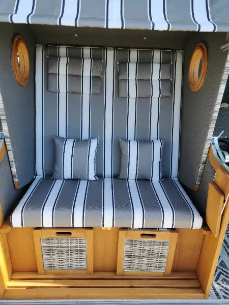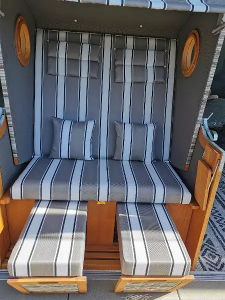 2-Sitzer-Strandkorb in gerundeter Ostseeform als Selbstbausatz (zusammengebaut) kann auch wieder auseinander genommen werden zum