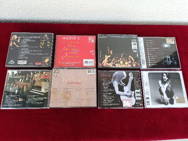 von italienischen Sängern und Musikgruppen, original, gut erhalten: Einzel-CD Album 7 CHF, Doppel-CD Album 13 CHF.