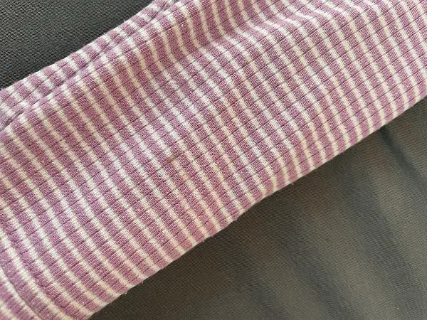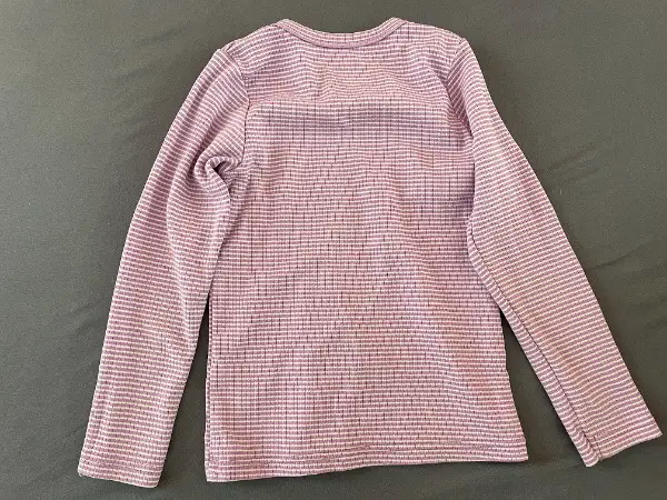 Schmuckes violett-weiss gestreiftes T-Shirt (es hat ein paar kleine Flecken; vgl. Fotos)