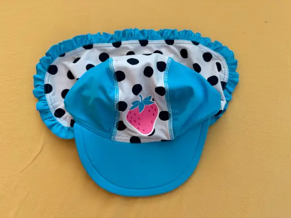 Neuwertig UVP-Badekleid mit Erdbeere + Hut, Gr. 116