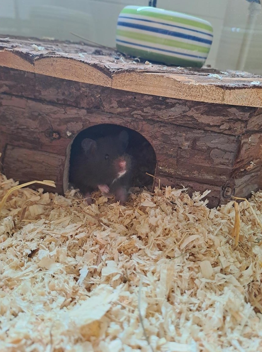 Wir Teddyhamster dürfen ausziehen. Wir sind ein Weibchen und zwei Männchen.