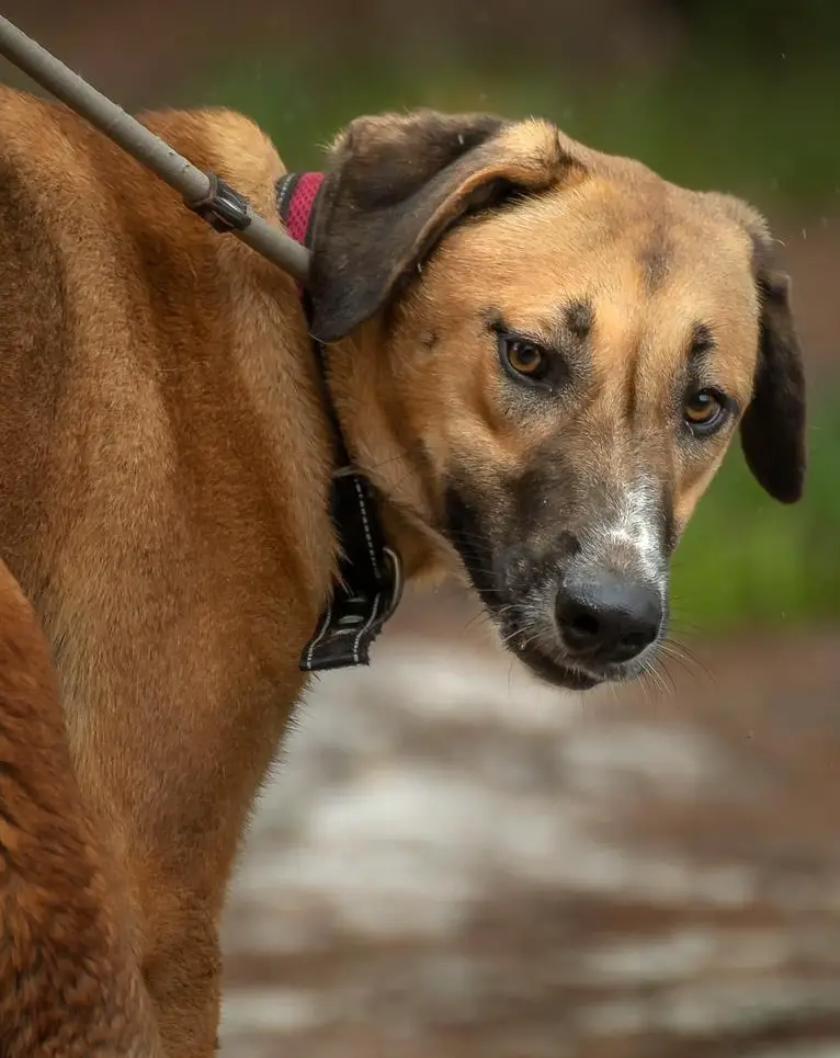 Hunde Geschwister Brownie und Cupcake und sie wurden als Welpen ausgesetzt auf der Strasse gefunden und sind seitdem in einem privaten Tierheim in Portugal, wo die Hunde liebevoll betreut auf ein neues Zuhause warten. Mischlingshündin Muffin hat eine Schulterhöhe von 68cm.
