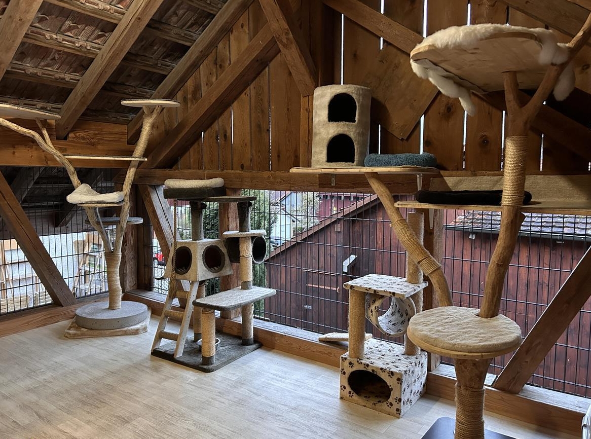 15 Min. vom Flughafen Zürich entfernt ist unser Hof, wo sich die Samtpfoten seit über 14 Jahren während Ihrer Abwesenheit wohlfühlen können. Viele Betten und Schlupflöcher in diversen Höhen bieten sich unsern Gästen an, ihren eigenen Wohlfühlraum zu schaffen. In Gemeinschaftshaltung werden alle gut beobachtet, gefüttert, gestreichelt und bei Bedarf gekämmt.