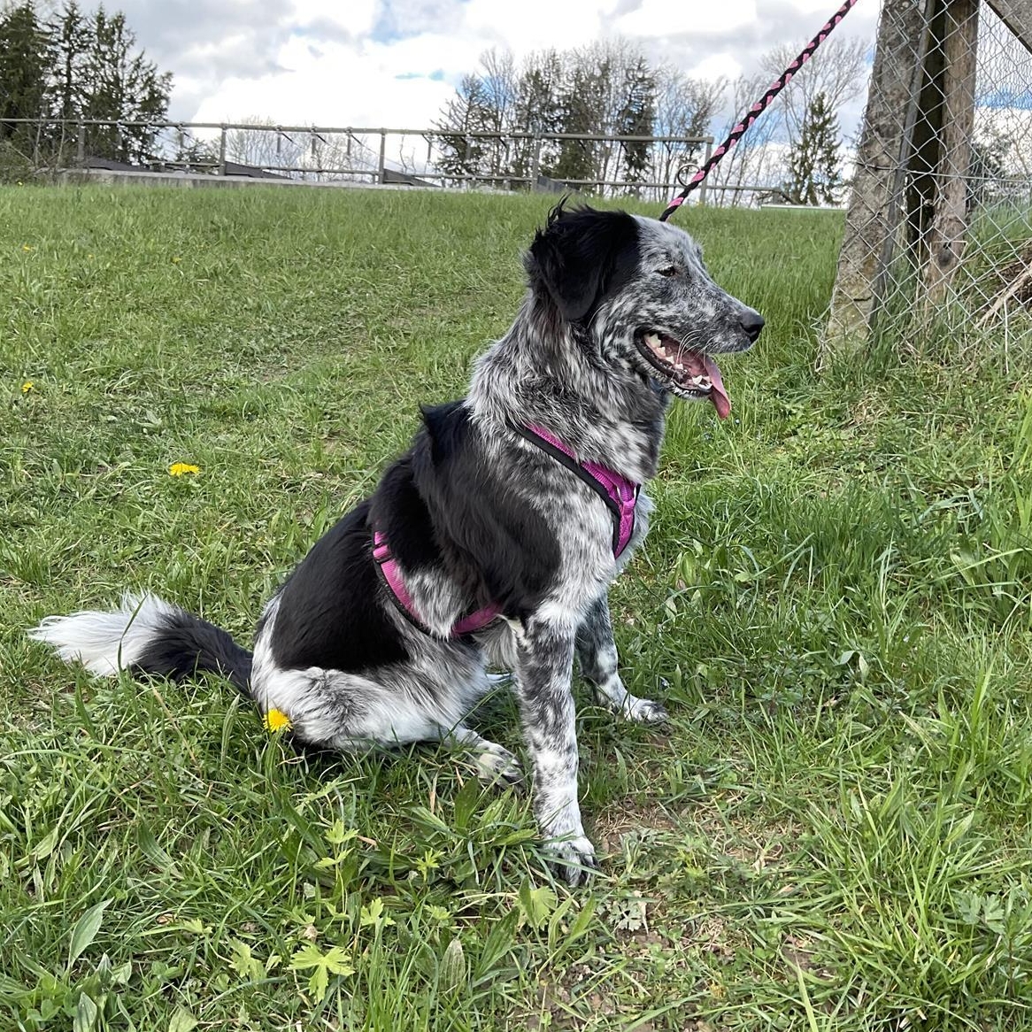 Auto überfahren und starb. Sie durfte im November 2023 direkt aus Ungarn über unseren Partnerverein ein Zuhause in der Schweiz beziehen. Leider waren ihre Besitzer mit ihrer Energie und ihrer Pubertät überfordert so das sie im April 2024 zu uns kam.