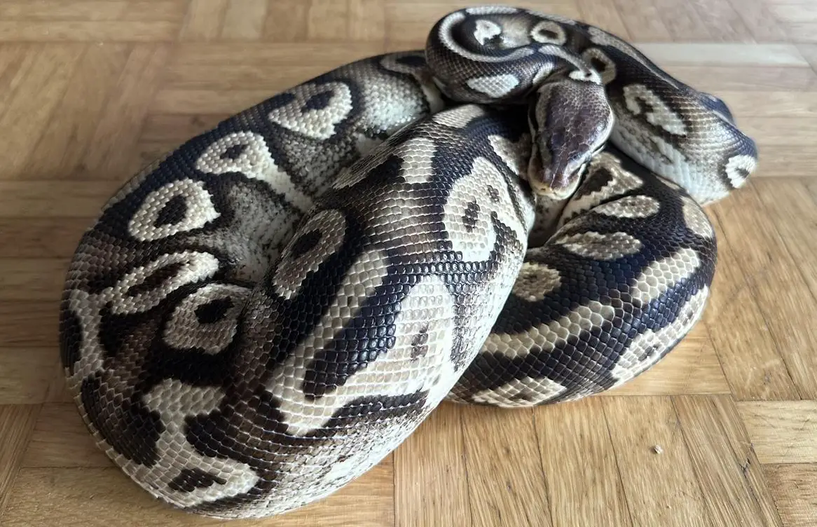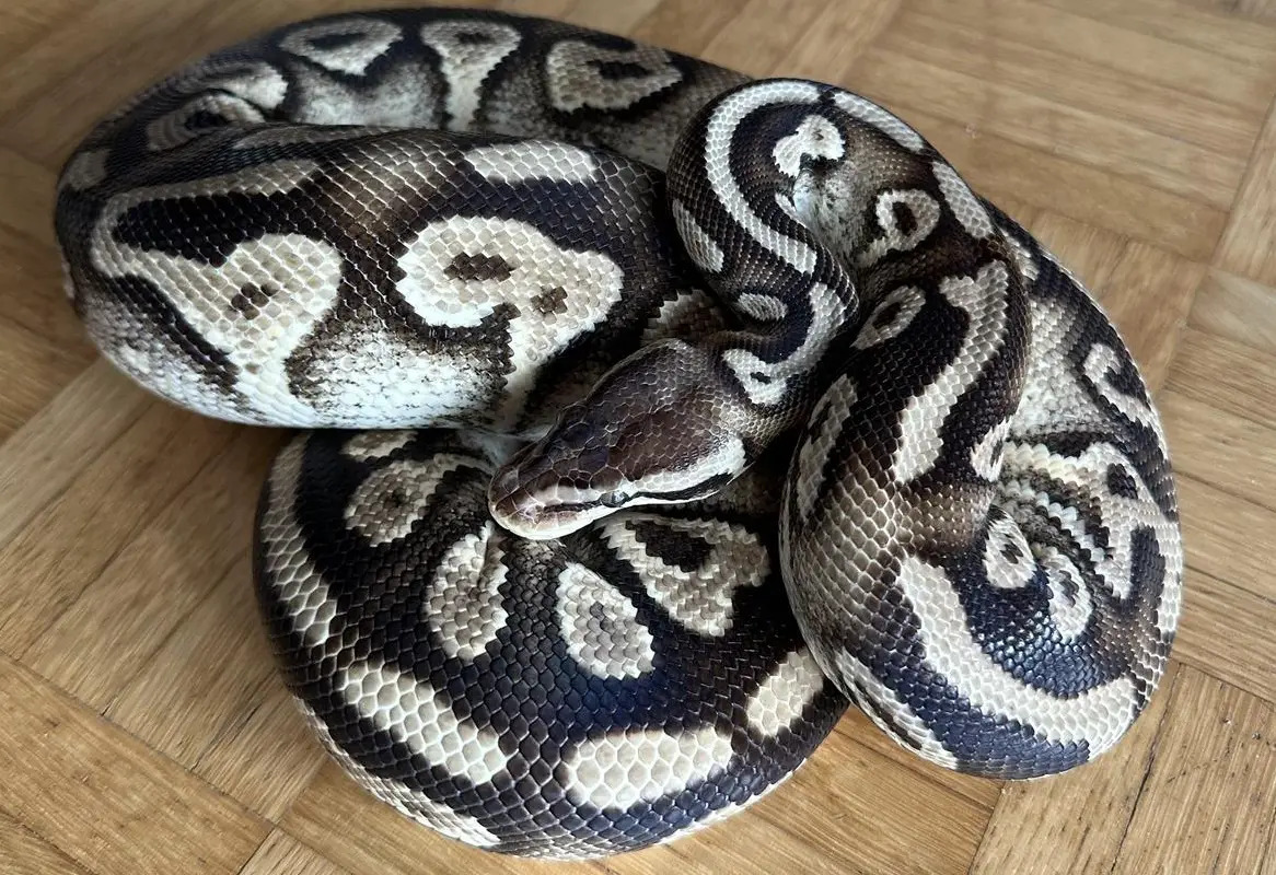 Schlange wiegt ca. 1700g und wurde 2014 geboren. Das Königspython Weibchen ist kräftig und weist ein normales Verhalten eines Python regius auf und frisst problemlos Frostratten. Weitere Infos auf Anfrage.