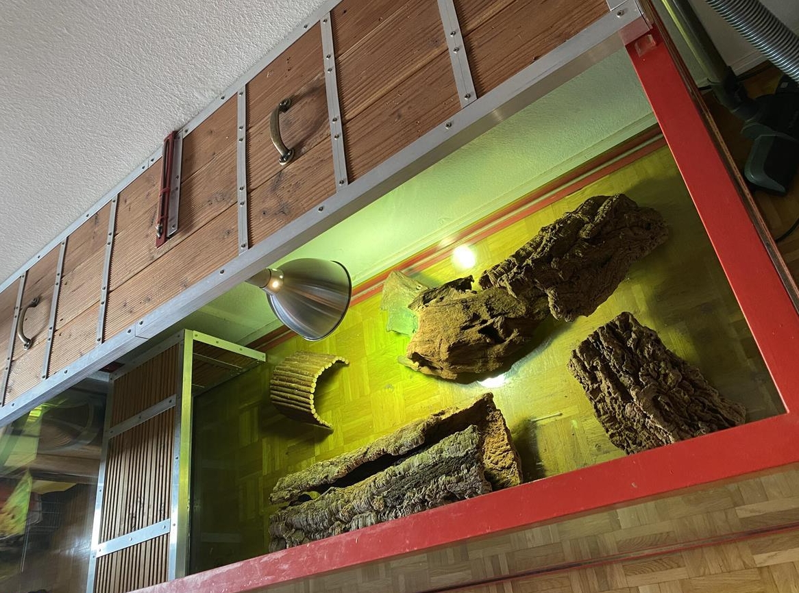 Haus etc. siehe Foto und Pinienrinde ca 8 mal 20 Liter und Bodensubstrad ca 6 mal 8,8 l Neupreis 2000 Franken jetzt 250 Frankenu