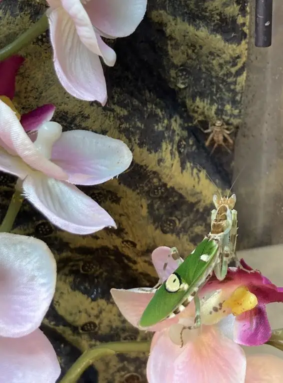Mantis Art verträgt auch krabbelnde Futtertiere wie z.B. Heimchen oder Schaben entsprechender Grösse.