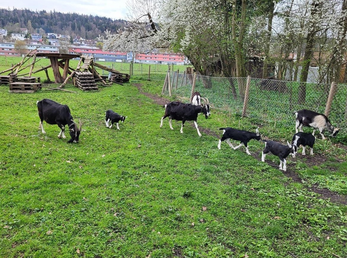 Die Bündner Strahlenziegen Gitzi dürfen Anfangs Juni 2024 ausziehen und sind dann auch geimpft.