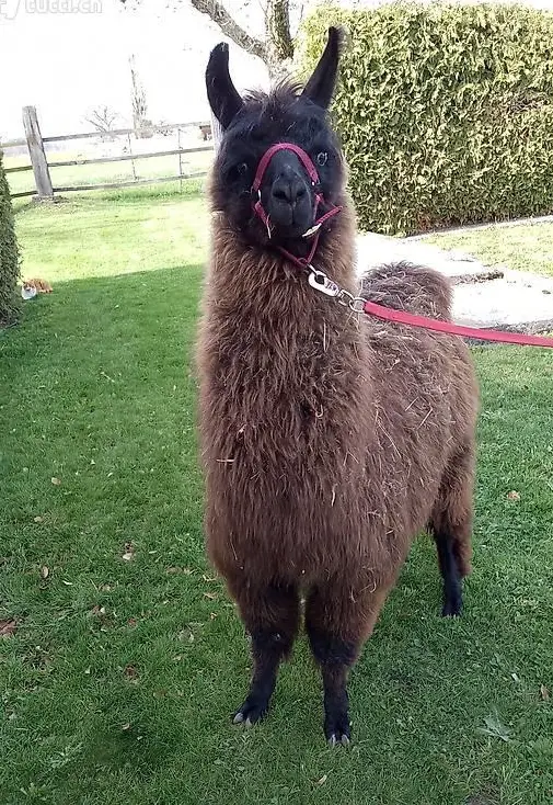 Lama Hengst hat ein sehr angenehmes Wesen. Der Lama Junghengst ist halfterführig und hat bereits einige Spaziergänge neugierig absolviert.